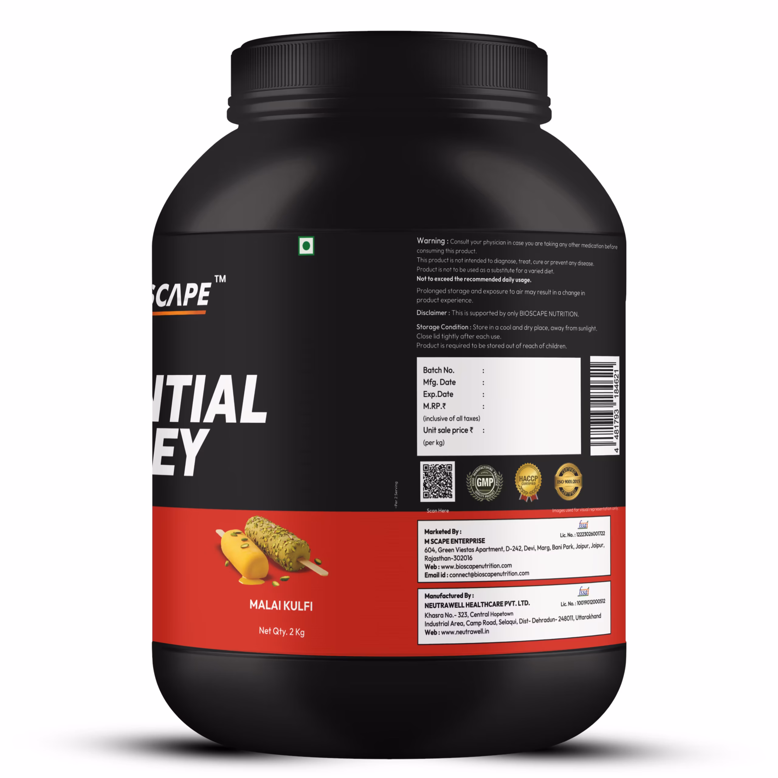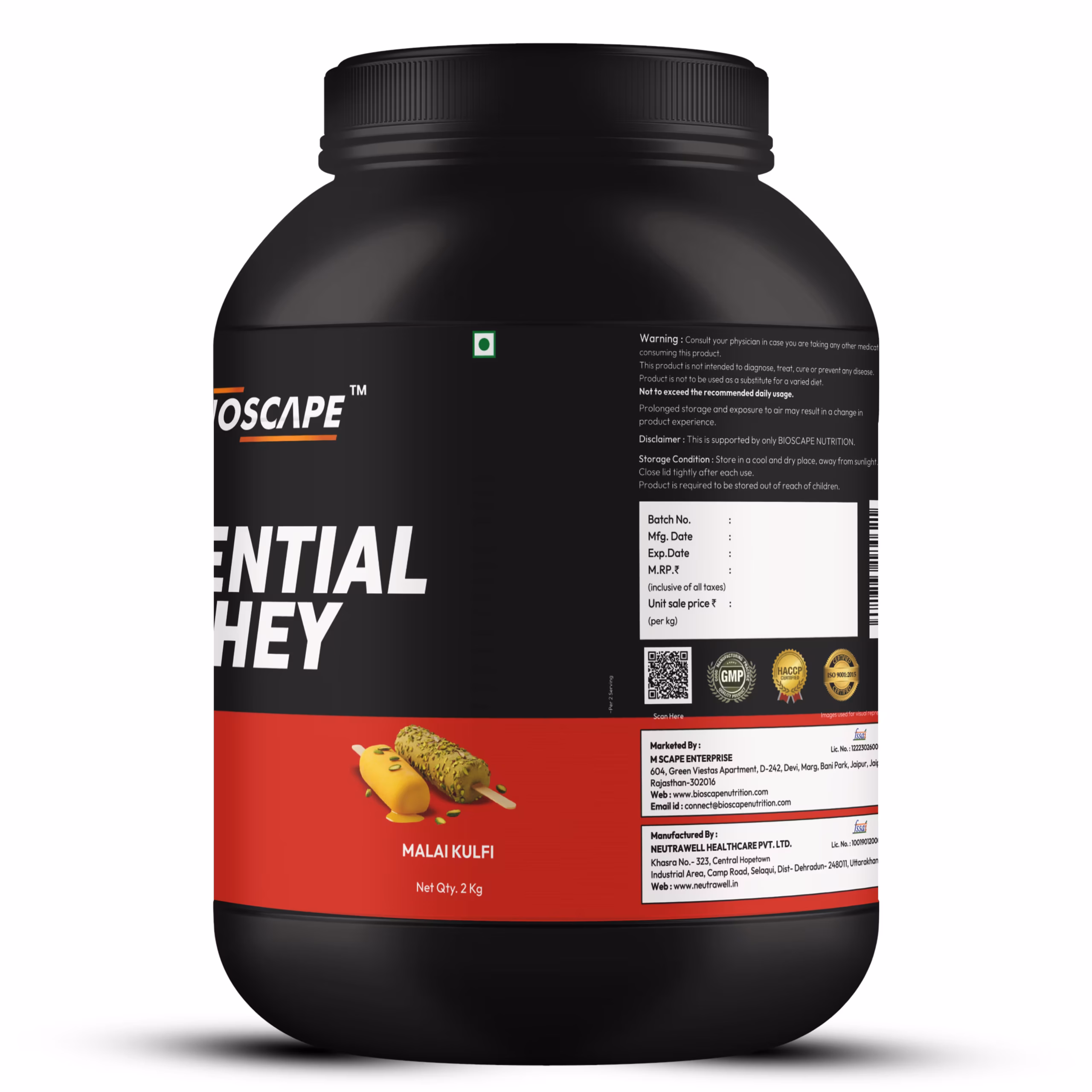 Bioscape Essential Whey Protein 2kg is designed to meet the daily protein needs of gym-goers and active individuals. This whey protein 2kg formula supports muscle recovery, strength, and performance, with a smooth and creamy Malai Kulfi flavour.